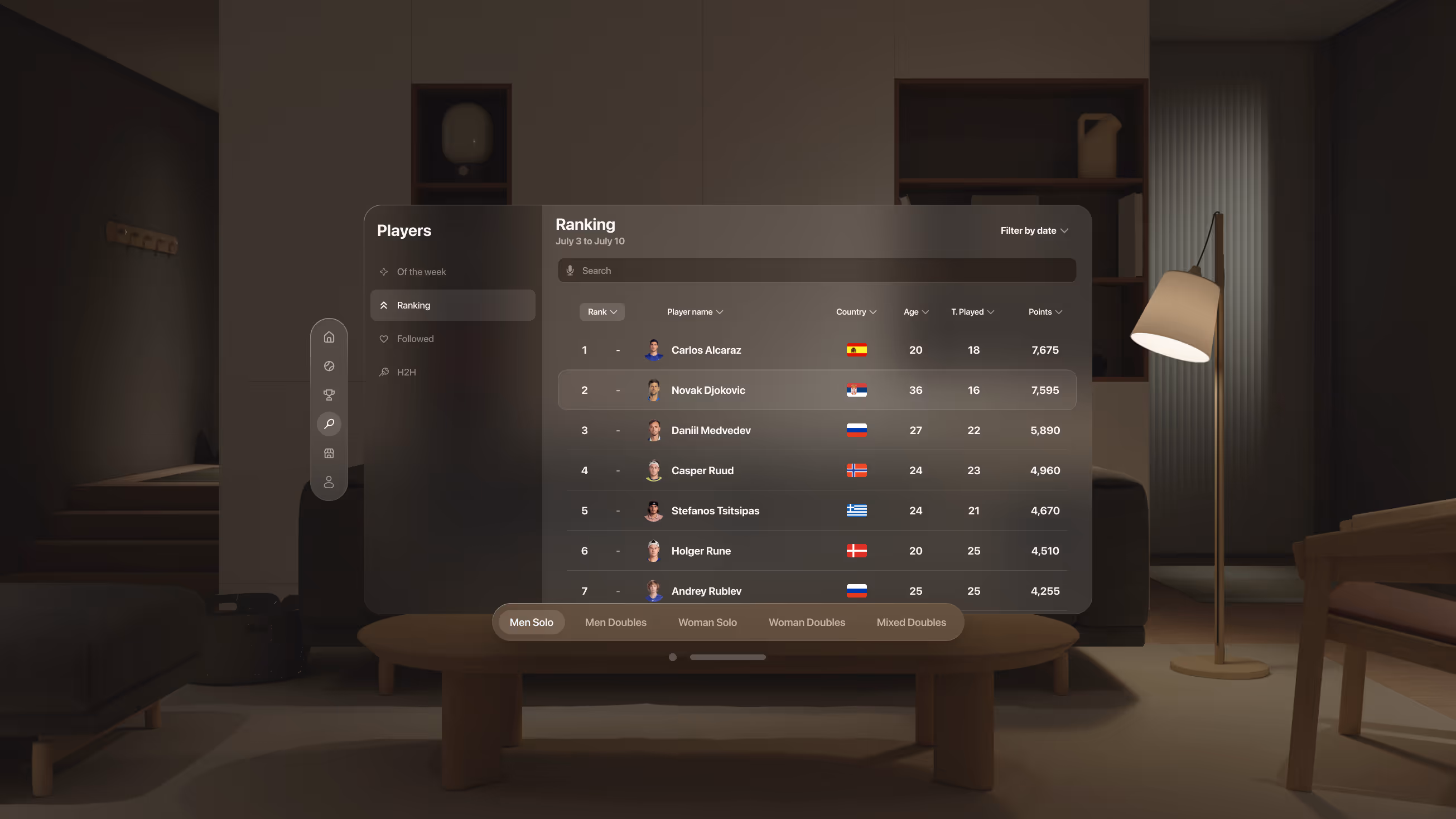 The goal was simple: adapt the Tennis app I had already made to the Apple Vision Pro ecosystem, ensuring that the experience is intuitive and accessible to users, without causing fatigue and generating satisfaction in them. Yes... simple.